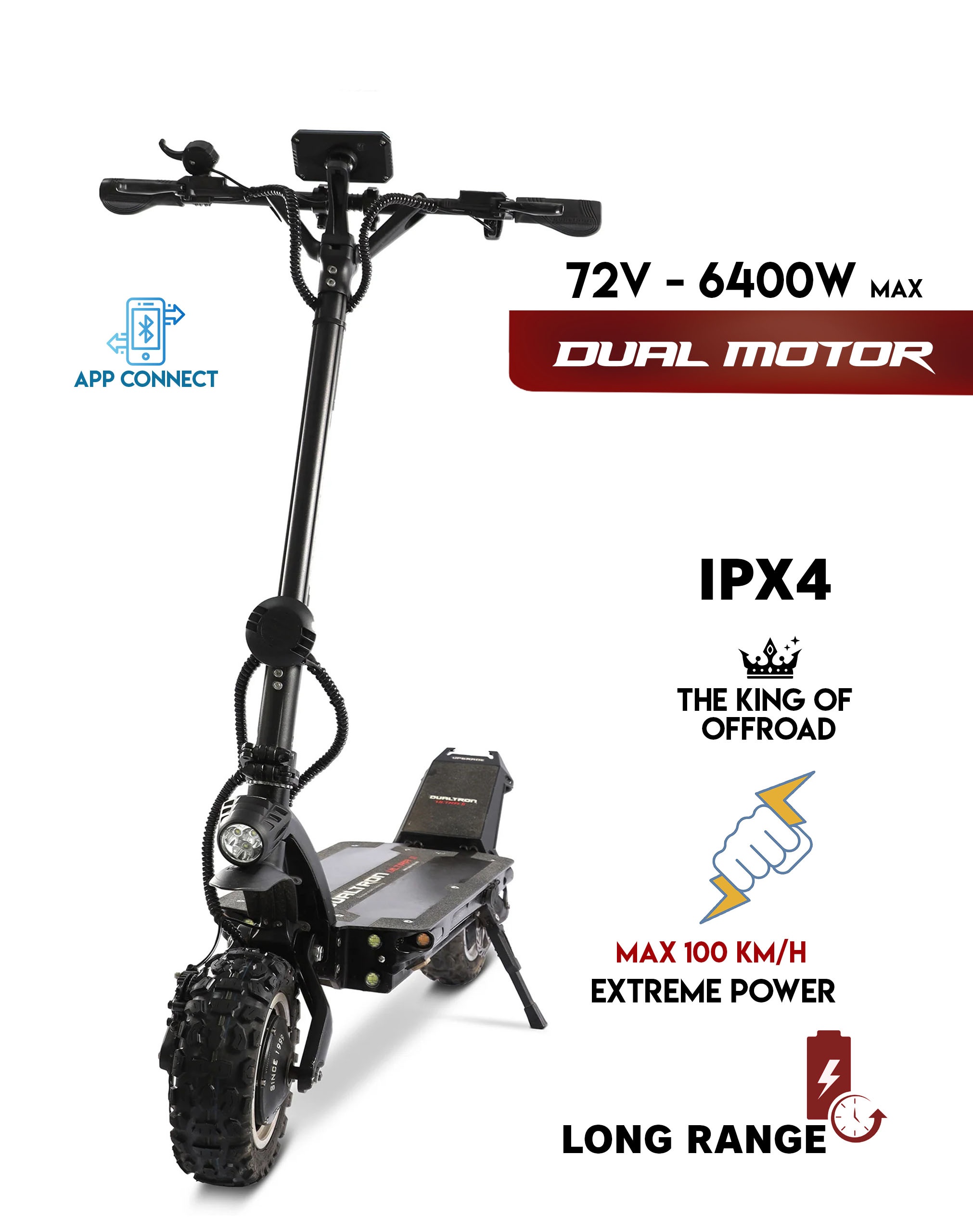 Don`t forget the newly added footrest, powerful hydraulic brakes and foldable handlebars and you can see why the Dualtron Ultra 2 has earned the nickname “The King of the Off-Road”!